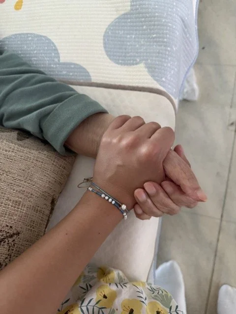 Her setup is mainly on a sofa bed that my uncle made for her in the living room so she didn’t have to be tucked away in one of the bedrooms all day, this way she could lay down in the open, sun-drenched space with plants and feel more of the action happening around the apartment— my uncle cooking or getting ready for work, me walking in with Lotte groceries, also waking up at 2pm after working through the KST nights (EST daytimes).