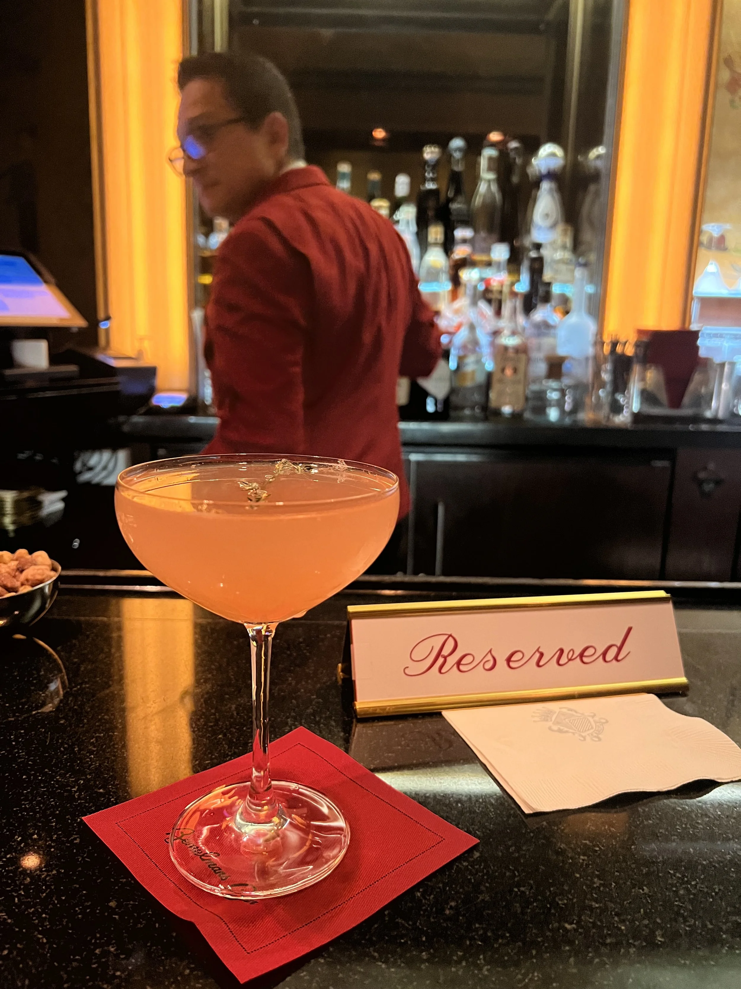 We pulled up to The Carlyle, the song not even having finished because it was like a 2 min drive. The doorman welcomed all of us. I could see him linger in eye contact like he was trying to see if the doorman recognized him but he gave no such signal, just a general warm welcome. We shuffled into the bar, jazz music playing, standing room only, velvet carpet, beautiful art, and immaculate vibes. I haven’t been here in years.